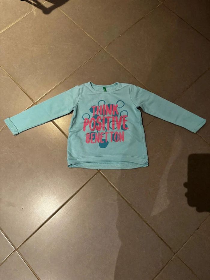 Pull / Sweat - United colors of Benetton - Think positive - Bleu turquoise, vert menthe - 4/5 ans W - photo numéro 1