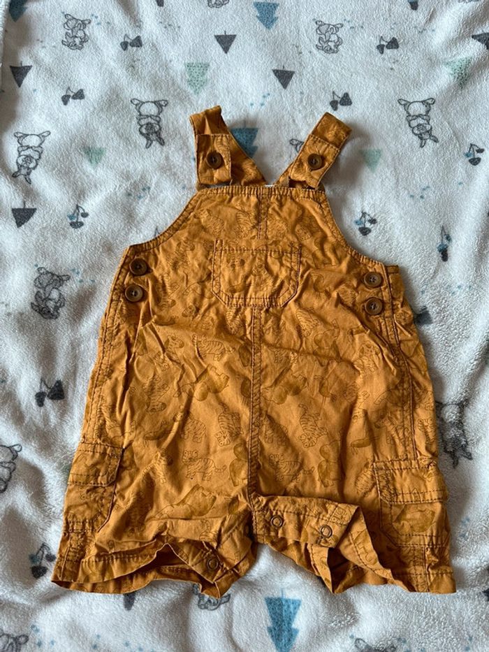 Salopette short couleur moutarde, très bon état Taille 6 mois