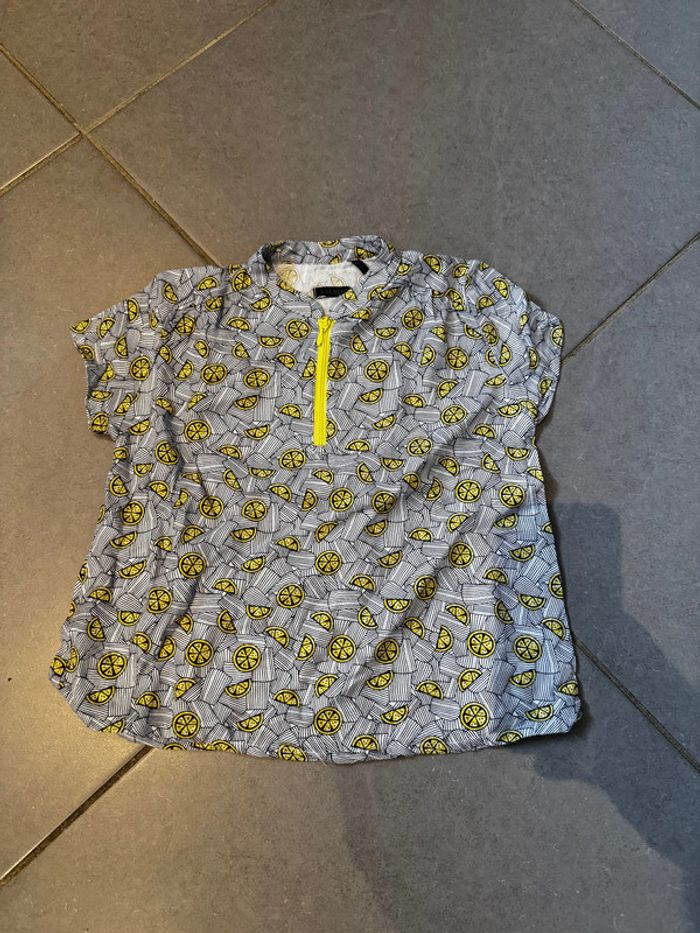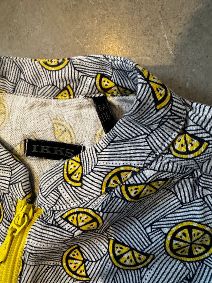 T shirt manches courtes avec fermeture éclair au niveau de la poitrine 100% viscose Marque: Ikks Modèle: Citron / Agrumes Couleurs: Bleu marine, jaune & blanc Taille: 6 ans Très bon état (voir les photos) D'autres articles de marques pour fille dans mon dressing W