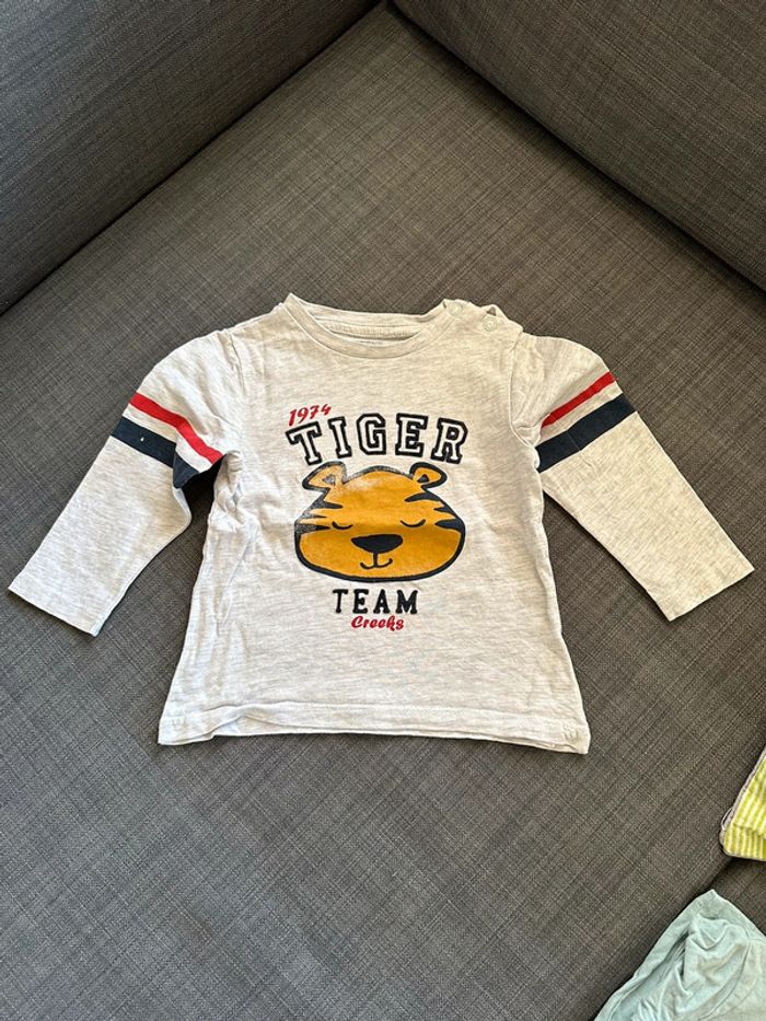 Tee shirt manche lotus gris clair Creeks, très bon état Taille 18 mois