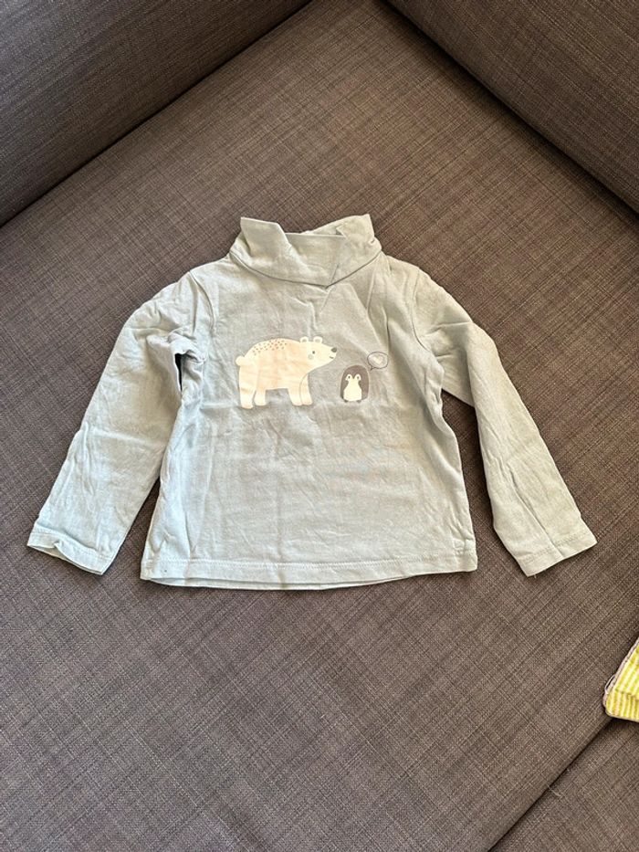 Tee shirt manche longue bleu ciel NPO, très bon état Taille 18 mois