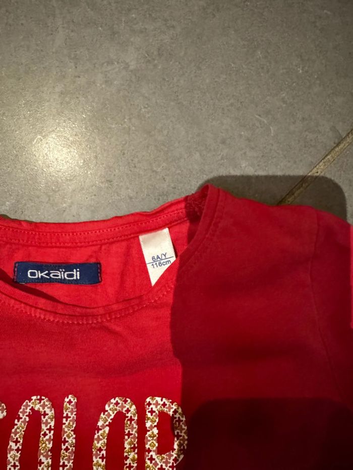 T shirt manches longues Marque: Okaidi Modèle: Color is everywhere in your life Couleurs: Rouge, blanc & jaune Taille: 6 ans Très bon état (voir les photos) D'autres articles de marques pour fille dans mon dressing W