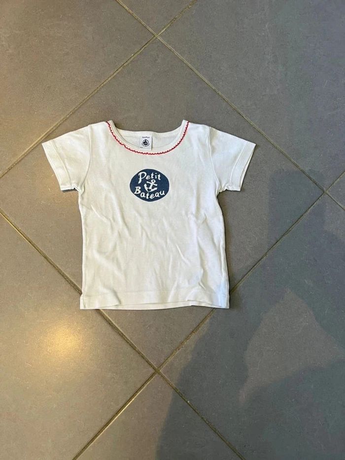 T-shirt / Maillot de corps manches courtes - Petit bateau - Ancre - Blanc, bleu marine - 3 ans - photo numéro 1
