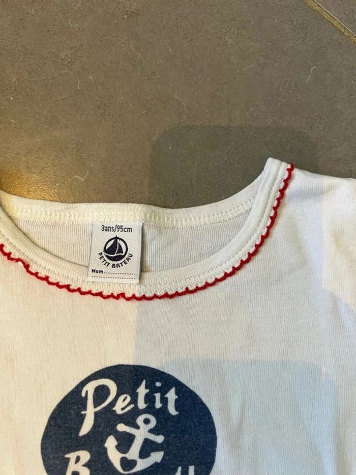 T-shirt / Maillot de corps manches courtes - Petit bateau - Ancre - Blanc, bleu marine - 3 ans - photo numéro 3