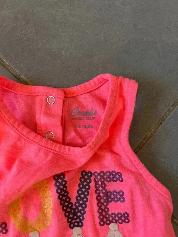 Robe / Tunique Sans manches Marque: Creeks Modèle: " Love " Couleurs: Rose fluo, bleu marine, violet & blanc Taille: 18 mois Très bon état (voir les photos) D'autres articles de marques pour fille dans mon inventaire