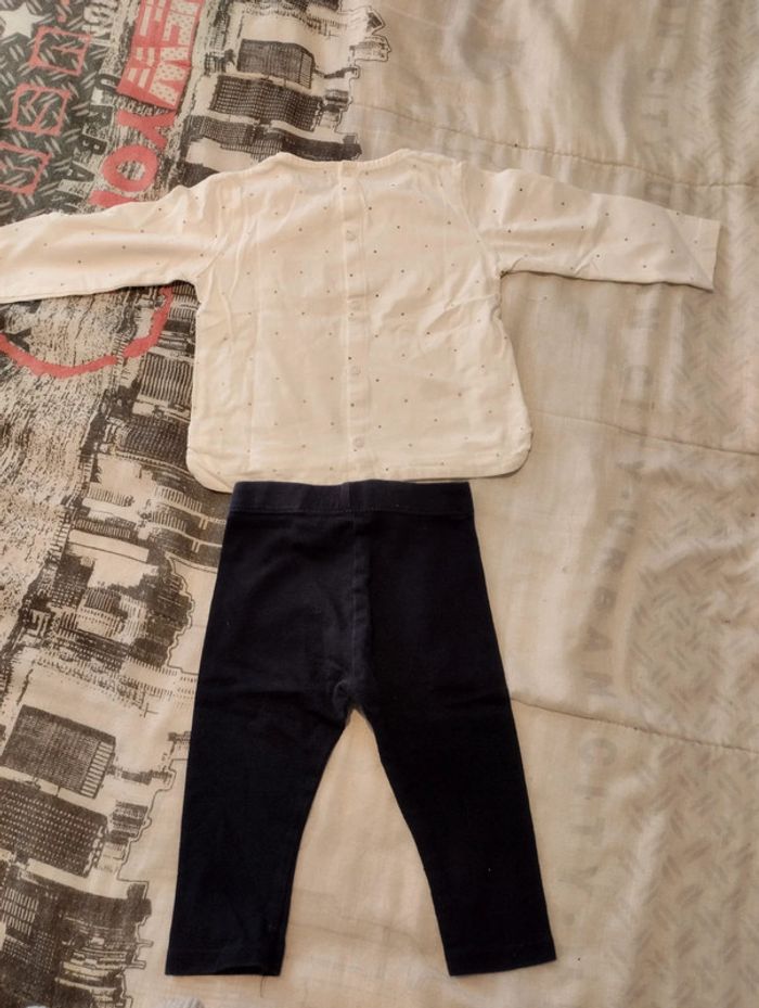 Ensemble 1 ans fille Tee shirt manches longues blanc Legging noir Excellent état N'hésitez pas à faire un lot avec d'autres articles
