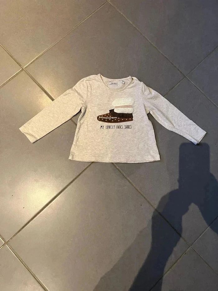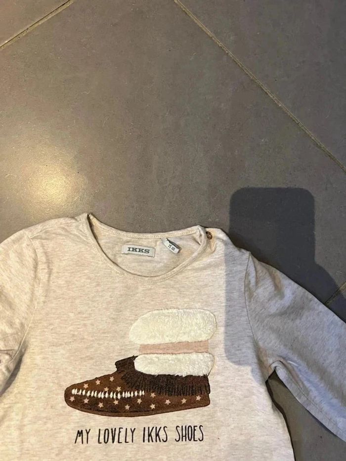 T shirt manches longues avec 2 boutons pressions sur l’épaule Marque: Ikks Modèle: My lovely Ikks shoes Couleurs: Beige, crème, gris, marron & noir Taille: 2 ans Très bon état (voir les photos) D'autres articles de marques pour fille dans mon inventaire A