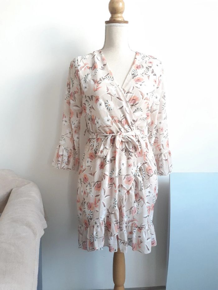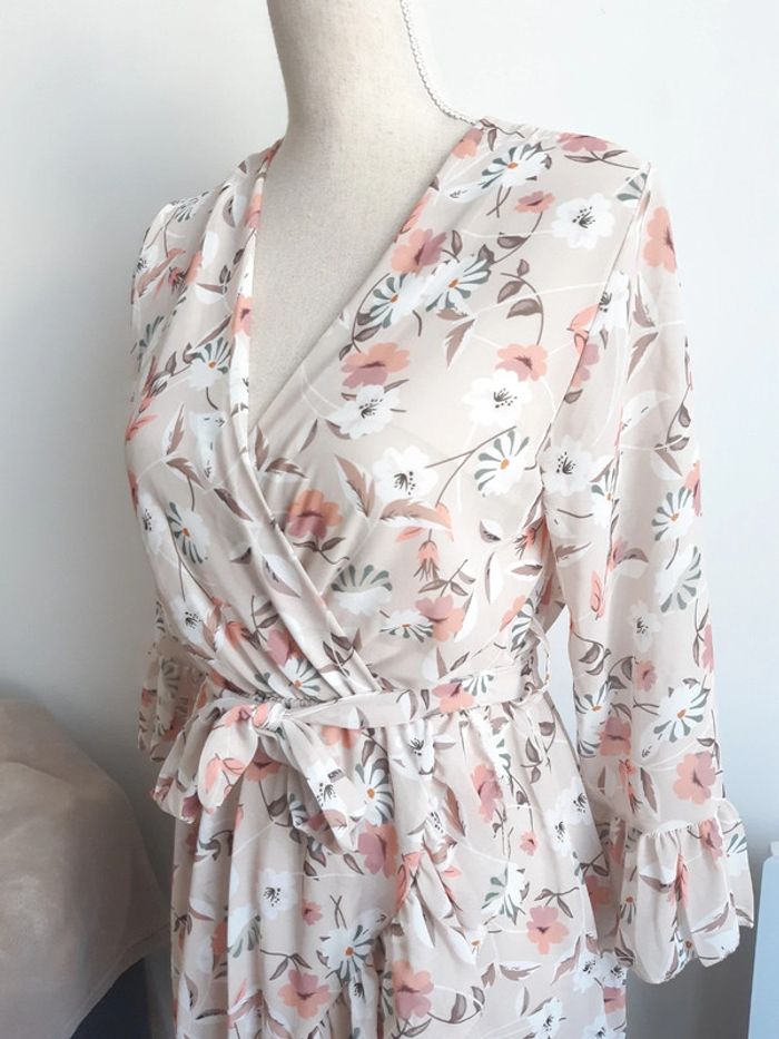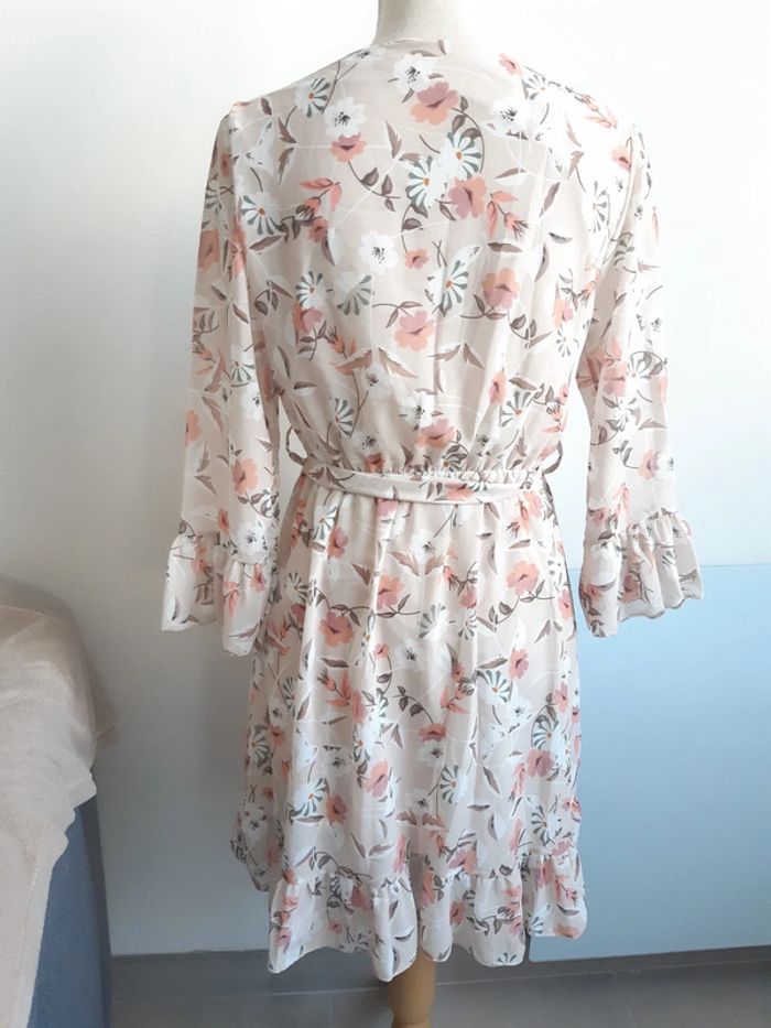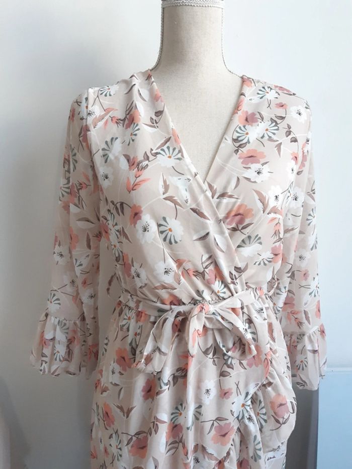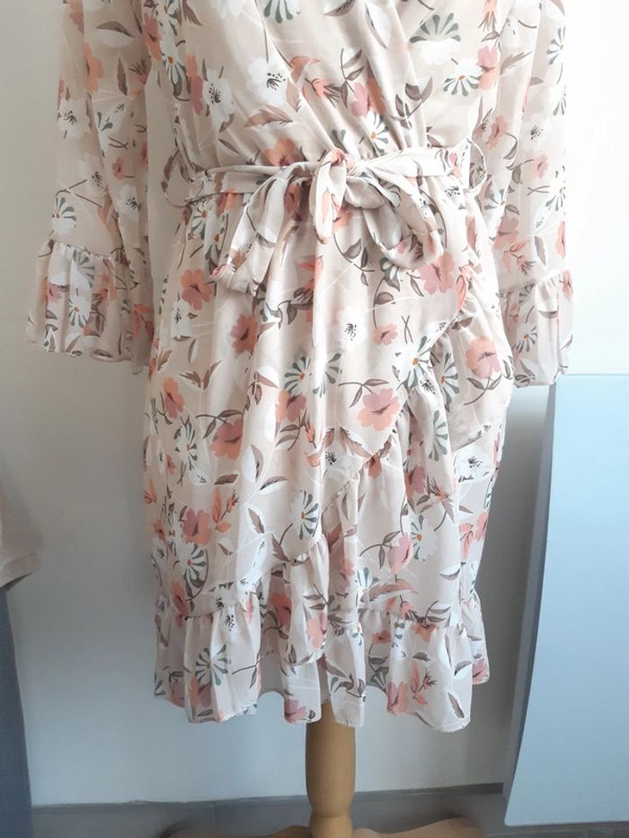 Robe col V Fluide Doublée Motif fleurs Manches longues Ceinture à nouer Convient pour une taille S Légers défauts voir photos #anthonyagnes_femme36