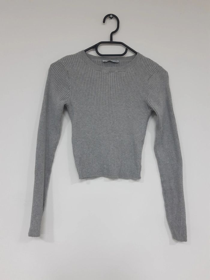 Haut manches longues côtelé gris - photo numéro 1