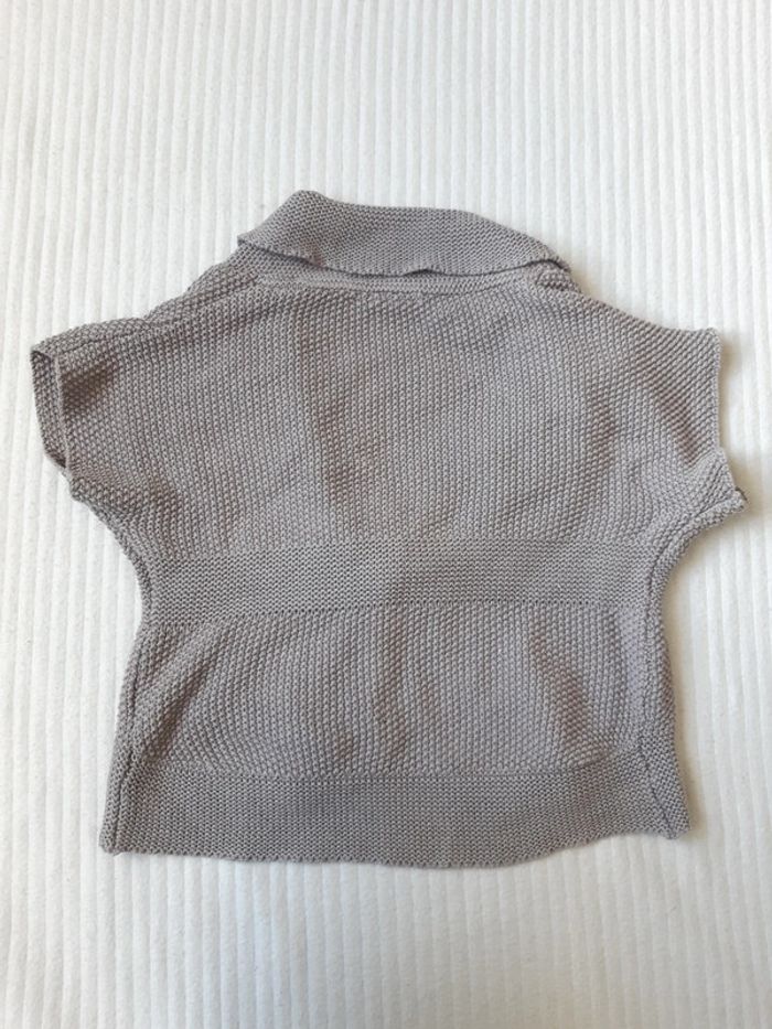 Gilet gris Ruban à nouer sur le devant En fine maille Manches courtes Une petite tâche à l'intérieur du pli du col, voir dernière photo #anthonyagnes_fille8A