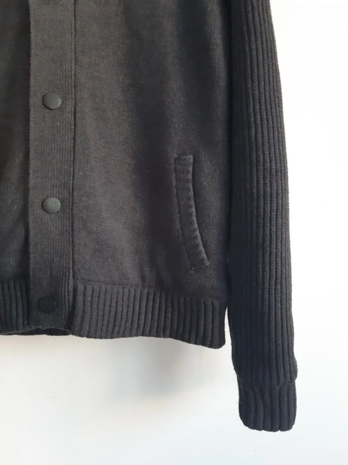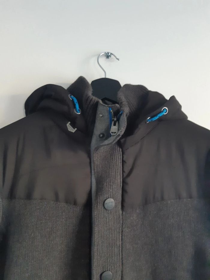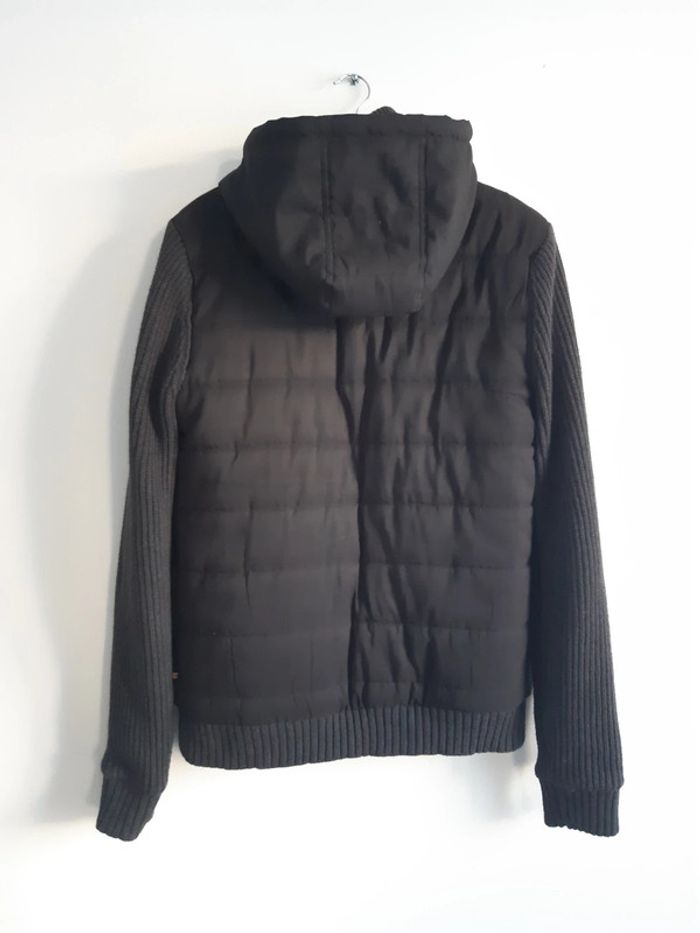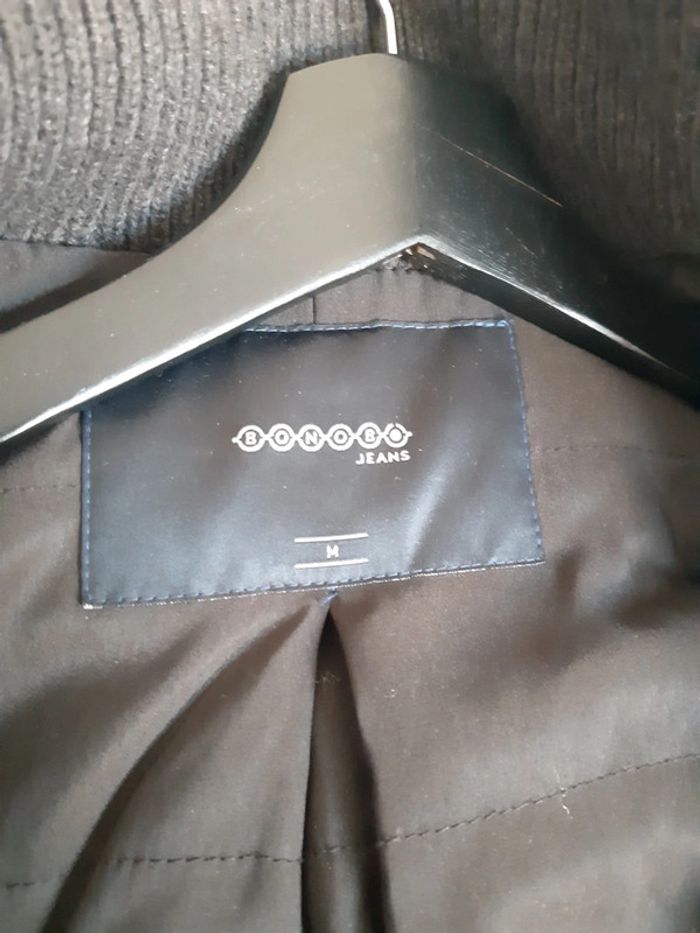 Manteau à capuche Bi matière, en maille et effet matelassé/doudoune dans le dos et la capuche Maille côtelé aux manches et au col Poches extérieures latérales et une intérieure Boutonné et zippé Col montant Porté seulement 2 fois Taille M Bonobo #anthonyagnes_homme