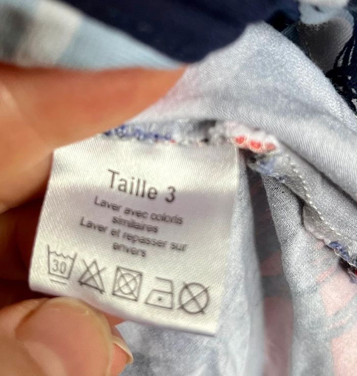 Haut manches 3/4 et volants à l’extrémité. Christine Laure T.3 Joli détail encolure Porté deux fois car il était trop juste pour moi (qui taille plus grand). Etat impeccable. Très souple et plutôt près du corps. Polyester elasthanne.