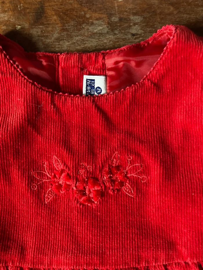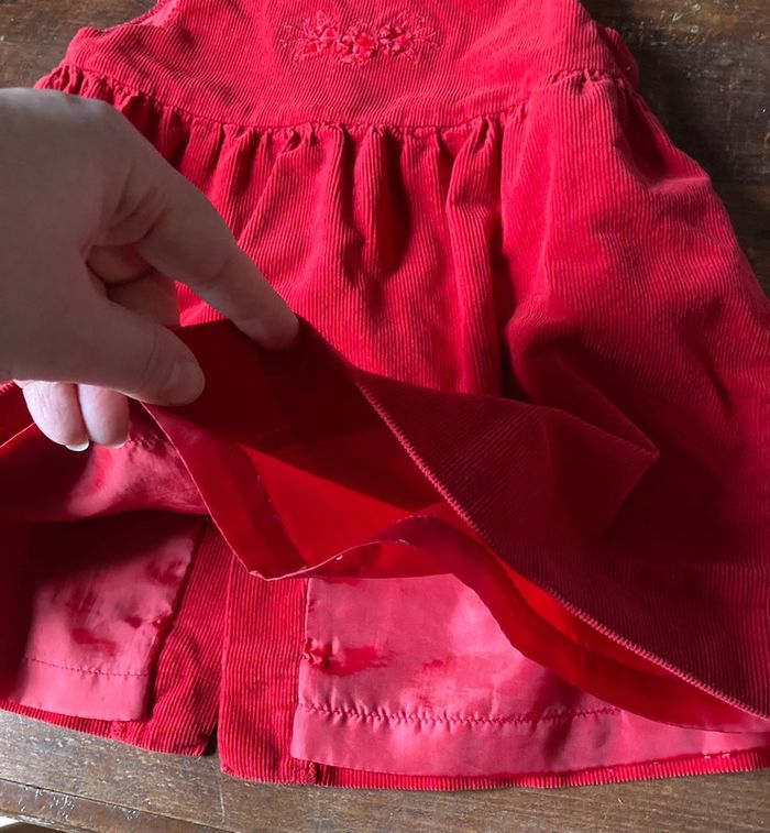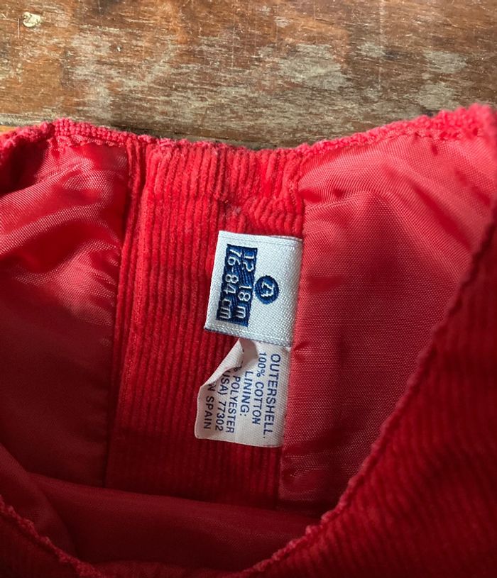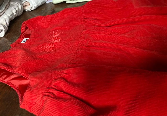 Robe en velours milleraies rouge doublée Taille 12-18 mois, mais plutôt 18 mois. Marque Zara Broderie poitrine Boutonnée au dos En TBE Bien d’autres habits notamment 18 mois dans mon dressing. Fouillez et créez un lot, je ferai un prix !
