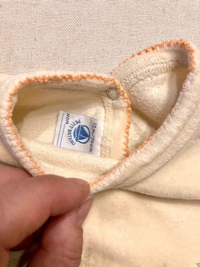 Pyjama velours jaune très doux Taille 12 mois Petit Bateau Motif poitrine Liseré jaune orangé au col En TBE Bien d’autres habits notamment 12 mois dans mon dressing. Fouillez et créez un lot, je ferai un prix !