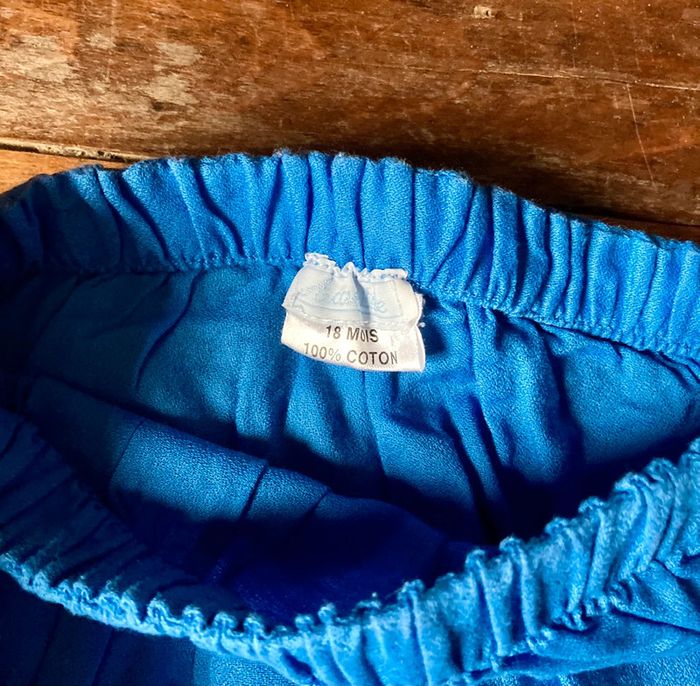 Sarouel bleu roi Taille 18 mois Marque Acanthe 2 petits fils tirés, sinon en TBE Bien d’autres habits notamment 18 mois dans mon dressing. Fouillez et créez un lot, je ferai un prix !