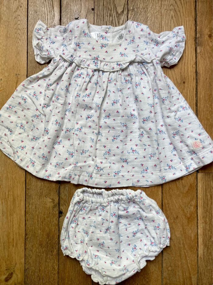 Robe + bloomer Petit Bateau 12 mois triple gaze - photo numéro 1