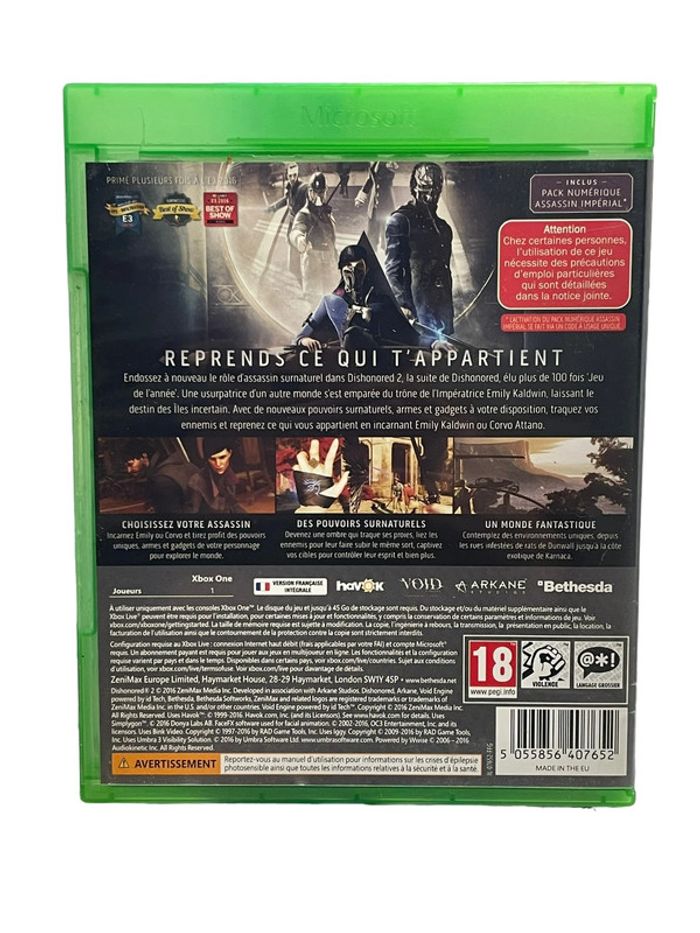 Jeu vidéo Dishonored 2 sur console Xbox One Le jeu fonctionne parfaitement ISBN : 5055856407652 Lot sur demande ✅ Articles similaires de mon dressing avec les liens ci-dessous ⬇️ #JeuxVideosbrocaz29 #Xboxbrocaz29 #XboxOnebrocaz29 #Brocaz29