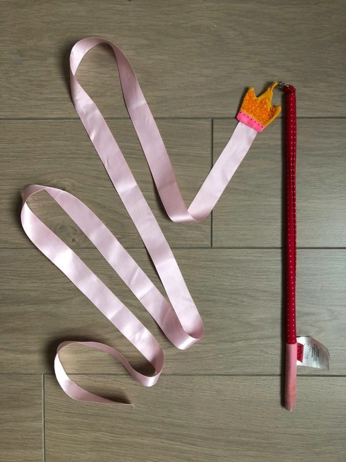 - Une baguette avec un long ruban rose en satin (40x170 cm)