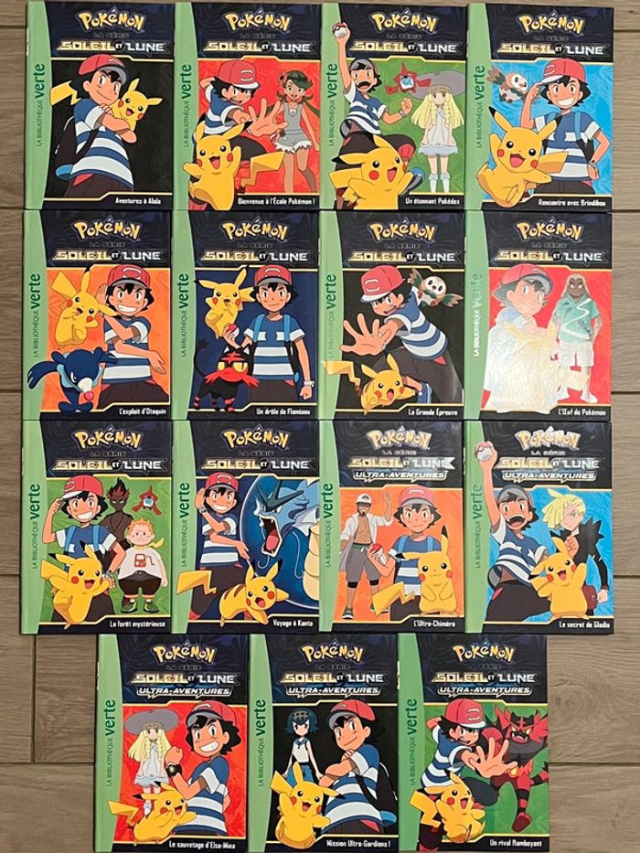 Lot de 15 livres La bibliothèque Verte Pokémon Soleil et Lune T-1 à T-15 Éditions Hachette 6+ - photo numéro 1