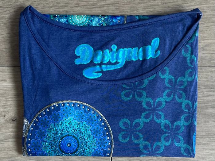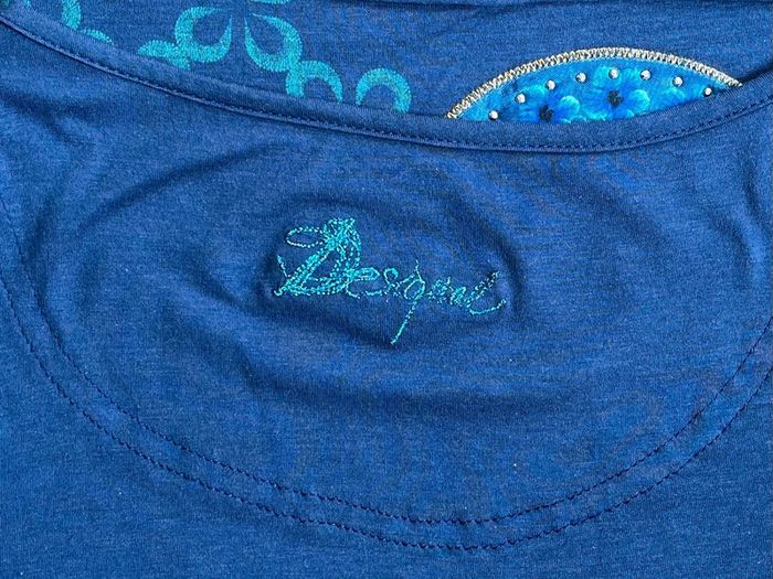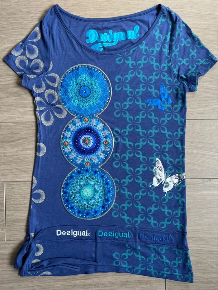 🔎 T-shirt tunique bleu Desigual T-XS (neuf sans étiquette, étiquette de taille coupée, jamais porté, 1ère main)