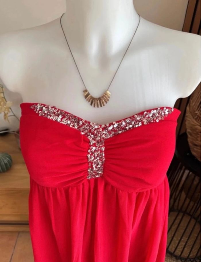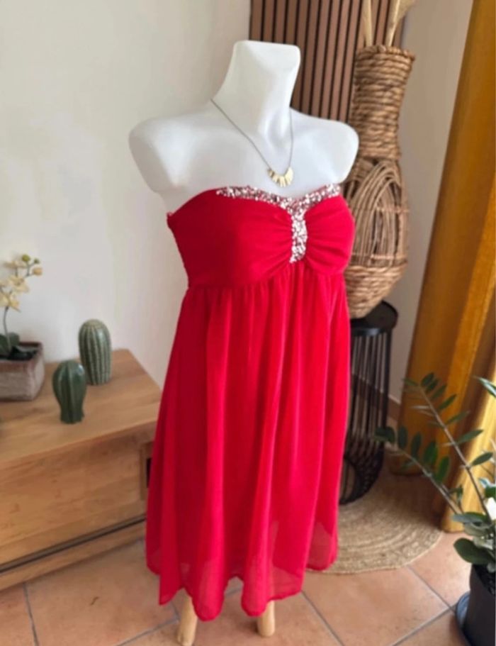 Robe bustier Rouge avec strass argenté sur poitrine Bustier élastique Doublée pour éviter transparence Longueur genou #labrune_33femme #labrune_33femme38 #labrune_33femmerobe 📤 envoi rapide # dressing trié par genre et taille Réduction sur lot activée