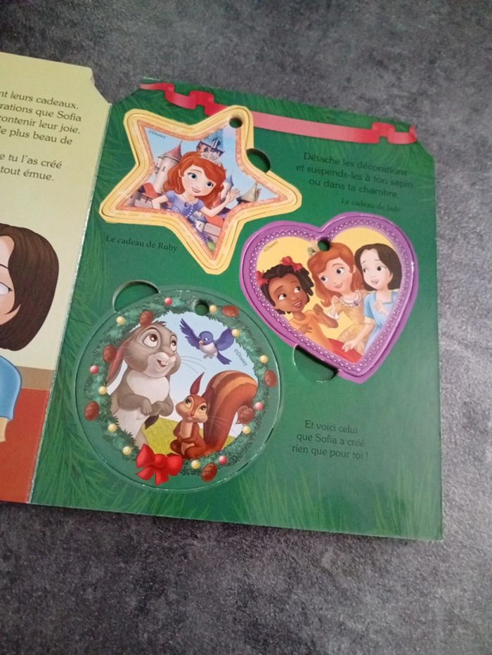 Princesse Sofia Grand livre avec couverture matelassée Valeur neuf 8,90 euros Histoire avec Cendrillon Le cadeau de princesse Sofia Décorations de Noël à la fin du livre Valeur neuf 9,95 euros Disney Livre Disney Cendrillon Princesse