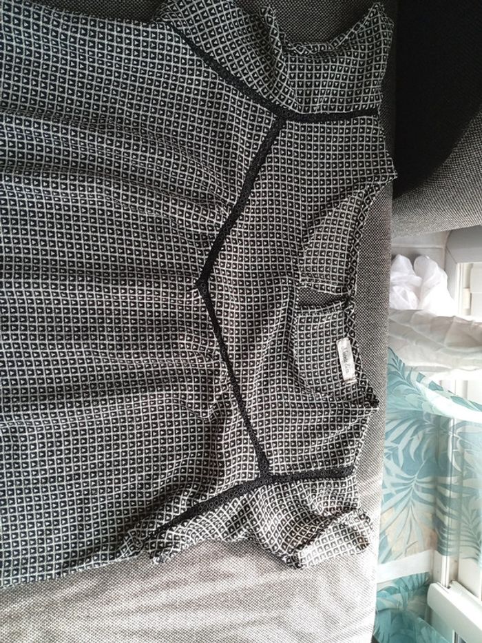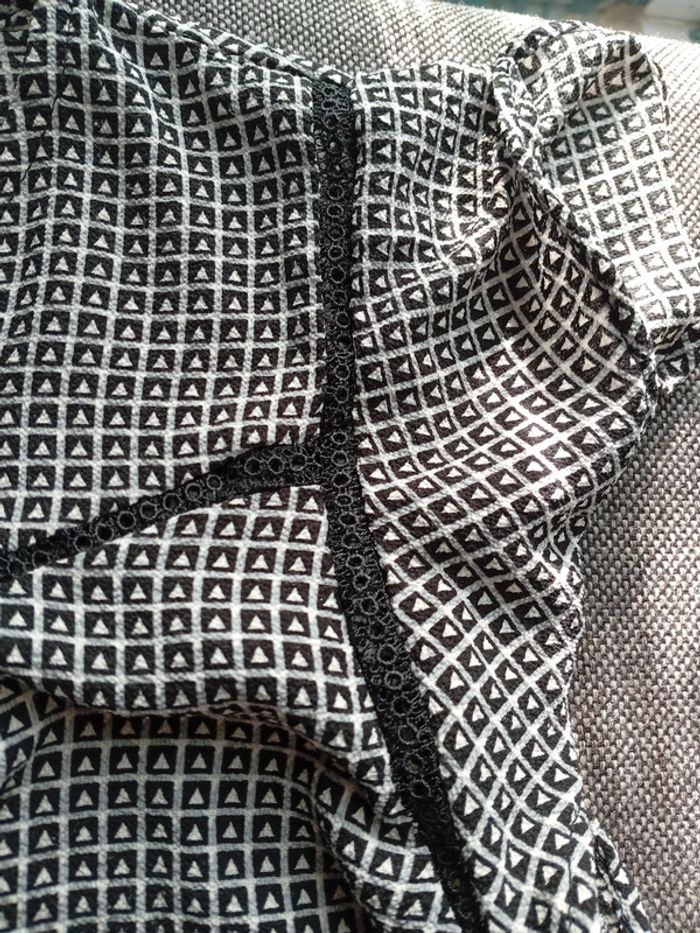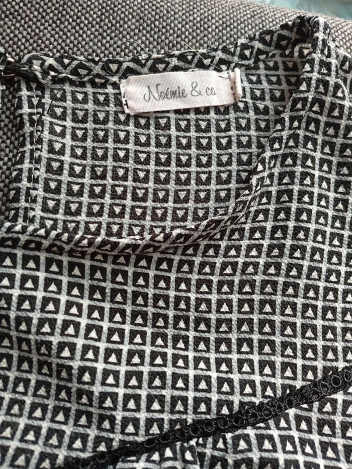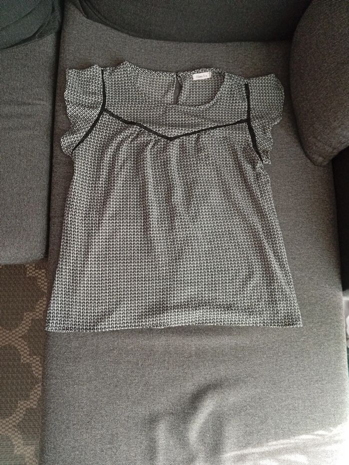 Blouse blanche et noire Volants sur les épaules Fermeture en goutte d'eau Dentelle noire Taille M