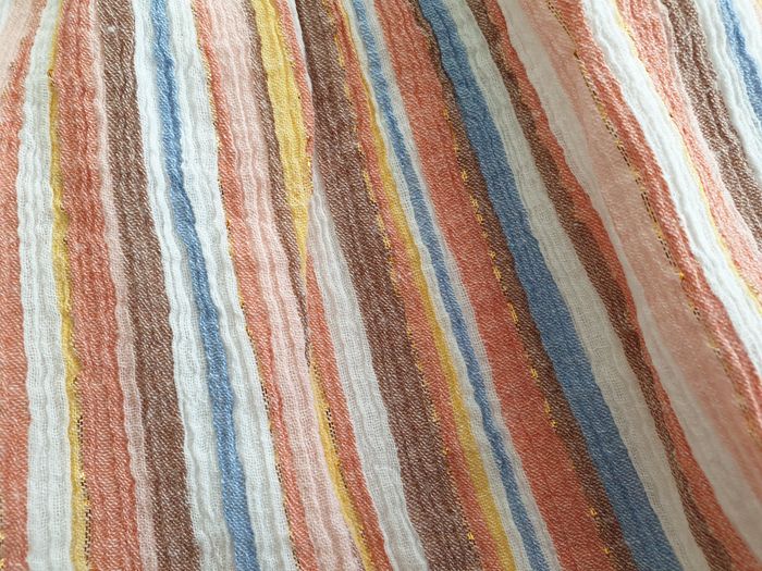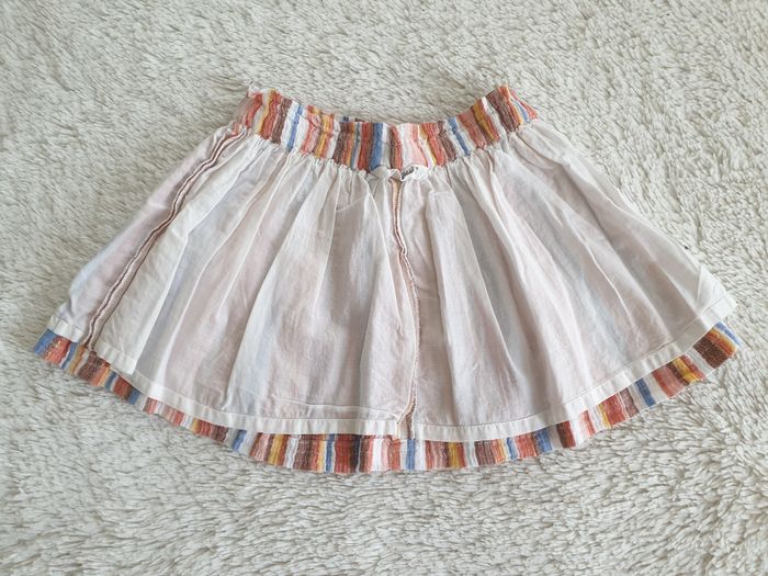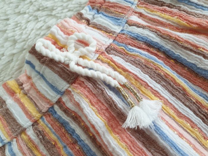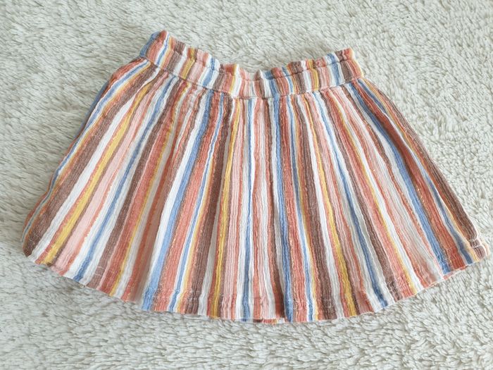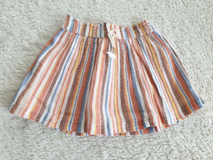 Jupe multicolore et fil doré Taille 92 C&A Jupe rayée mulitcolore : - tons pastels : blanc, bleu, marron glacé, rose , corail , jaune et fil doré - taille élastiquée - cordon noué - jupon doublure blanc Très bon état , très peu portée Pour accéder rapidement au dressing fille 2 ans / 92 : #shoealacreme_dressingfille #shoealacreme_fille2ans