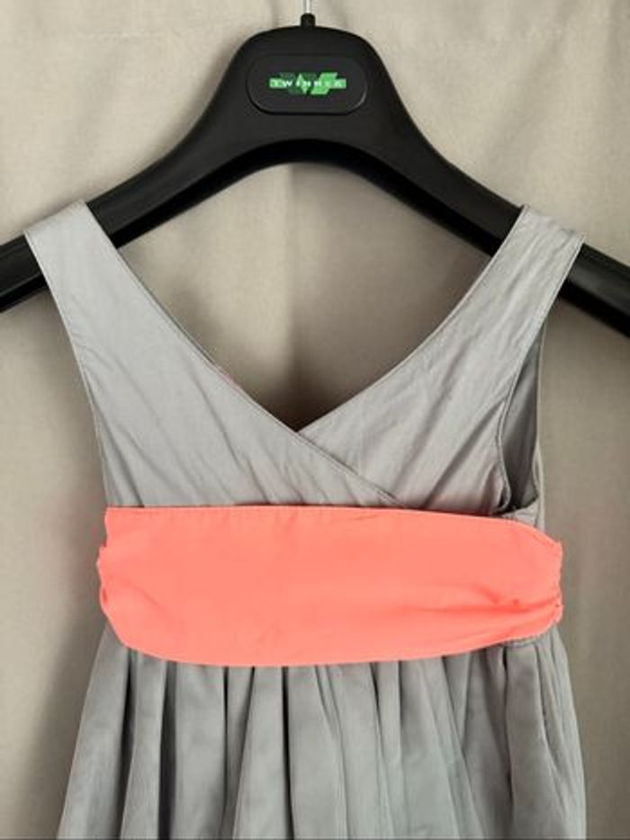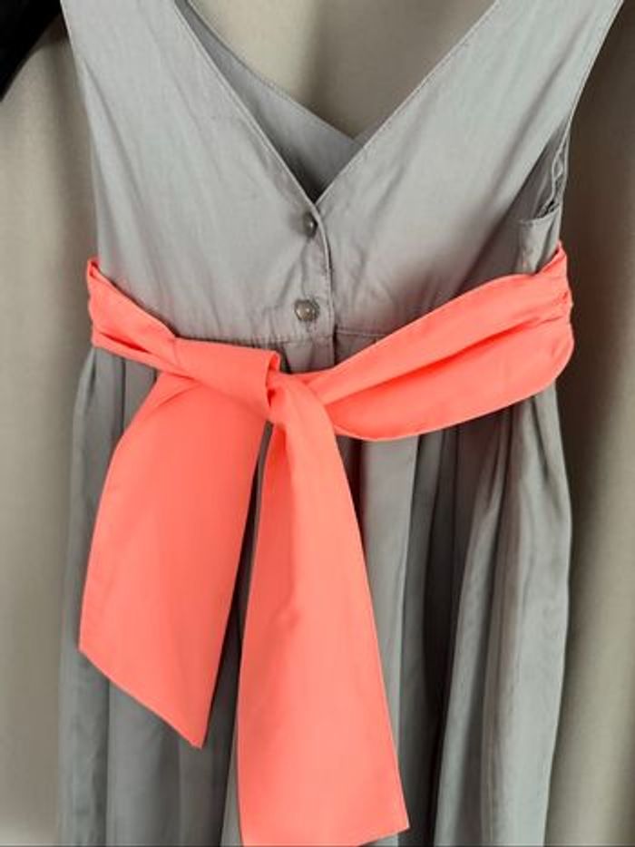 Bonjour à tous, Je vends une robe avec sa ceinture de la marque NKY de couleurs grise et ceinture corail en matières coton et polyester. La robe fermé avec des boutons dans le dos et une ceinture. Si vous avez des questions ou vous voulez plus d’informations (photos ou mesures), je suis disponible.