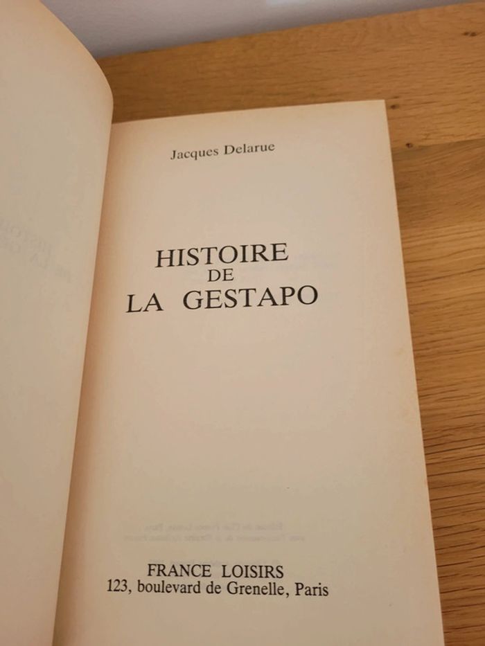 Auteur Jacques Delarue. Editions France Loisirs. Couverture impeccable. Intérieur jauni et tranches piquées. Livre non coupé, jamais lu.