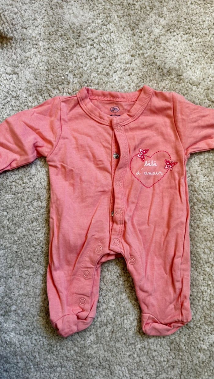 Pyjama en coton de la marque Mots d’enfants, taille 1 mois. Couleur rose clair, tout doux et confortable 👶 Idéal pour les premiers jours de bébé. Très bon état, porté une seule fois. Lavé et prêt à l’emploi 🧺 Envoi rapide et soigné 📦