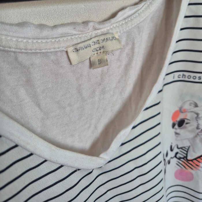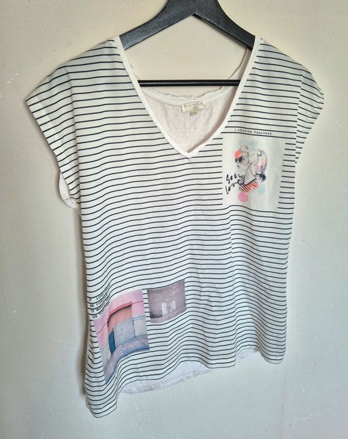📌 Lot 20% de remise pour l'achat de 5 articles, suite ... T-shirt blanc à rayure noir, col v, manche courte, ➡️Largeur à plat sous les bras  47 cm ➡️Longueur 60 cm ➡️étiquette composition manquante ⭐ Excellent état ✈Envoi rapide des colis 💗 Abonnez vous à mon profil, nombreux articles ajoutés régulièrement ! 🌸 Tapez Laetitresors pour voir mes annonces #laetitresors_tshirt36 #tshirt #grain #malice #blanc #noir #marin #manche #courte #blouse #bi #matière #laetitresors