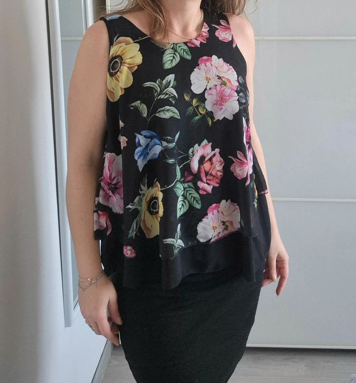 📌 Lot 20% de remise pour l'achat de 5 articles, suite ... Débardeur noire à fleurs multicolore, en voile, non transparent ➡️Largeur à plat sous les bras  49 cm ➡️Longueur 60 cm ➡️95% polyester 5% élasthanne ⭐ Excellent état ✈Envoi rapide des colis 💗 Abonnez vous à mon profil, nombreux articles ajoutés régulièrement ! 🌸 Tapez Laetitresors pour voir mes annonces #laetitresors_debardeur38 #debardeur #noir #made #italy #fleurs #voile #large #bretelle #blouse #rose #jaune#vert #bleu #laetitresors