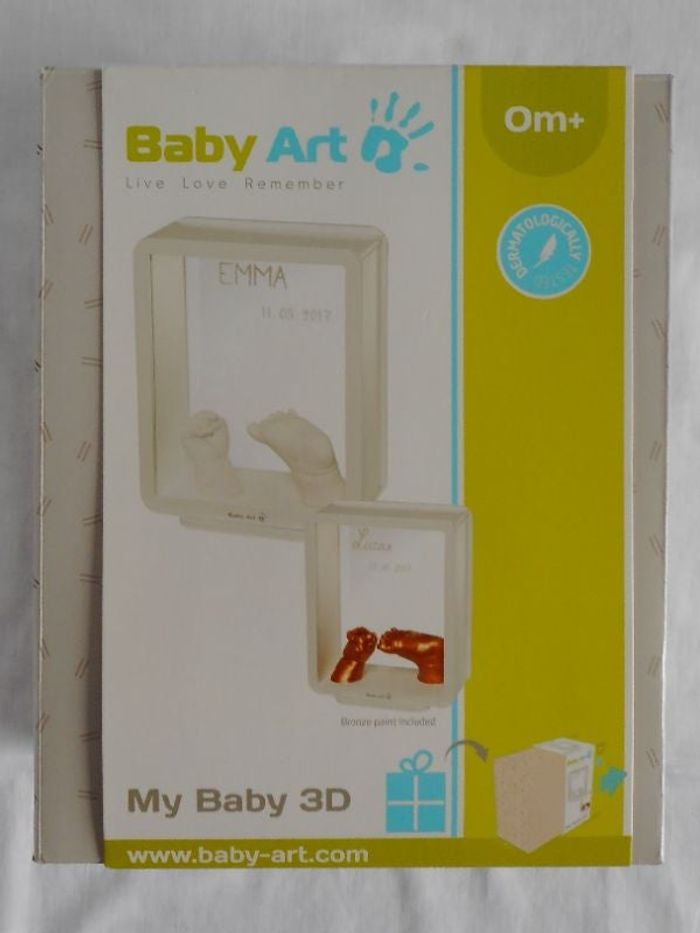 Vends un set Baby Art 3D composé d'un cadre avec la possibilité de réaliser 2 impressions 3D des pieds et / ou des mains de bébé. Possibilité d'ajouter le nom de bébé au cadre pour une petite touche personnelle qui durera pour toujours. Sans danger pour bébé ! Facile à faire : pas de cuisson et tout le matériel nécessaire se trouve dans la boite. Plusieurs tentatives possibles avant séchage ! Dimensions boite : L. 18 cm x l. 12 cm x h. 23 cm. Etat NEUF, encore dans son carton d'origine !! Doublon... Prix : 30 €