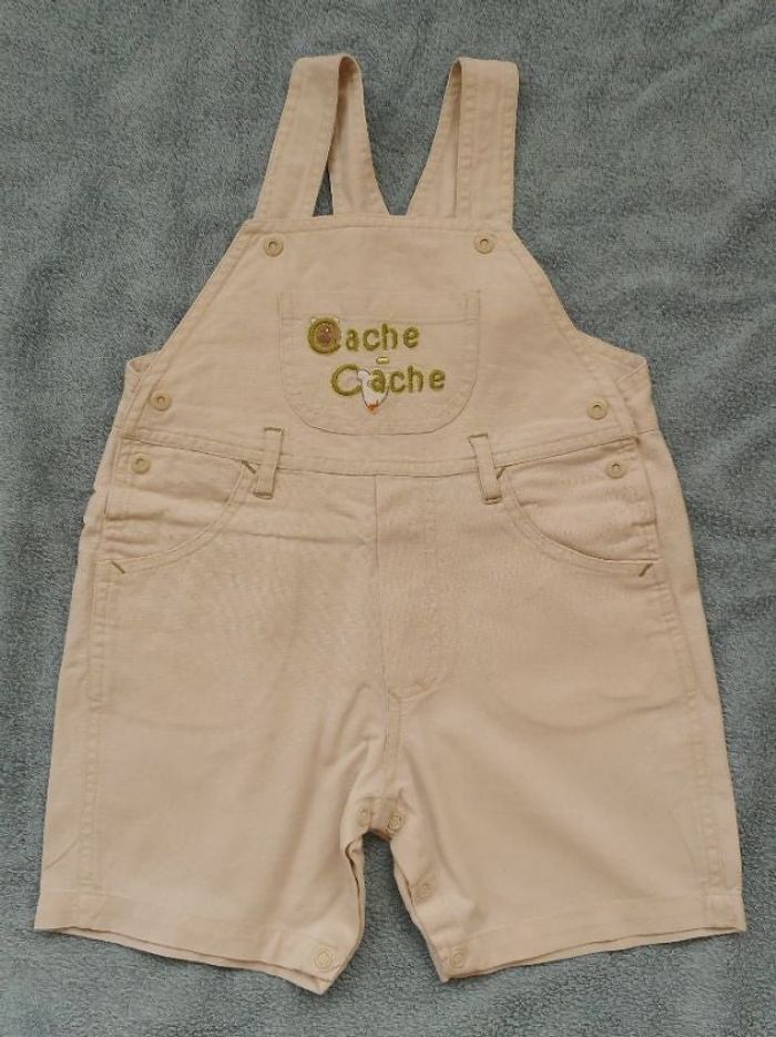 Vends une salopette short de couleur beige, de marque Sergent Major. Bretelles réglables sur 2 longueurs par pression. Pressions entrejambe. Taille : 9 mois. Très bon état, proche du neuf ! Prix : 6 €.