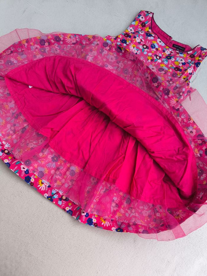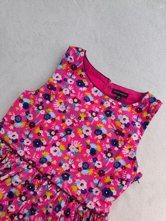 Robe à bretelles Marque Sergent Major Taille 5 ans, 110 cm • Coloris rose, bleu, jaune, bordeaux... • Imprimés fleurs • Fermeture éclair sur le côté • Goutte au dos avec bouton • Fronces à la taille • Doublure avec tulle sur le bas En très bon état #evelyne_filles_5ans #evelyne_filles