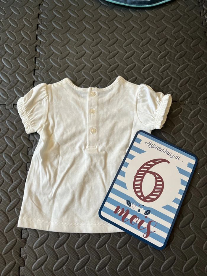 Tes shirt blanc bébé 6M, d’autres produits et vêtements bébé disponible dans mon dressing