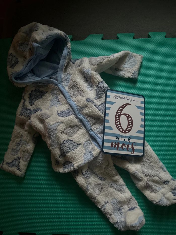 Ensemble chaud dinosaures mixte 6M peu porté très bon état, d’autres vêtements, accessoires et produits bébé disponible dans mon dressing,