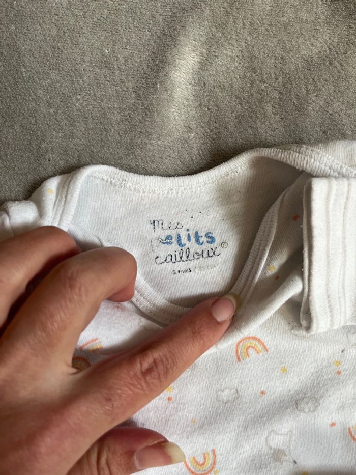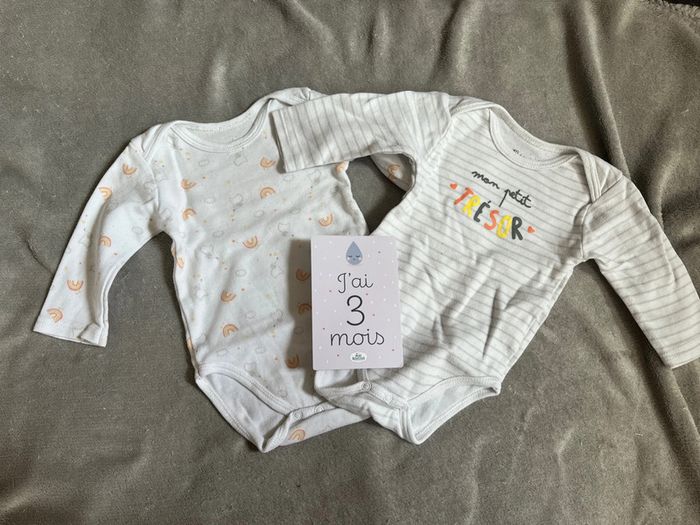 Lot body mixte manches longues mes petits cailloux arc en ciel/mon petit trésor taille 3M (59cm) porté plusieurs fois d’autres produits et vêtements bébé disponible dans mon dressing