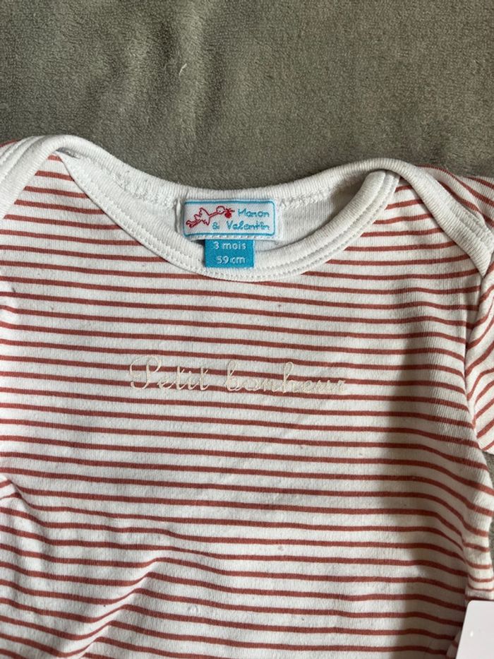 Body manche longue mixte petit bonheur 3M (59cm) marque Manon et Valentin porté 1x, d’autres produits et vêtements bébé disponible dans mon dressing