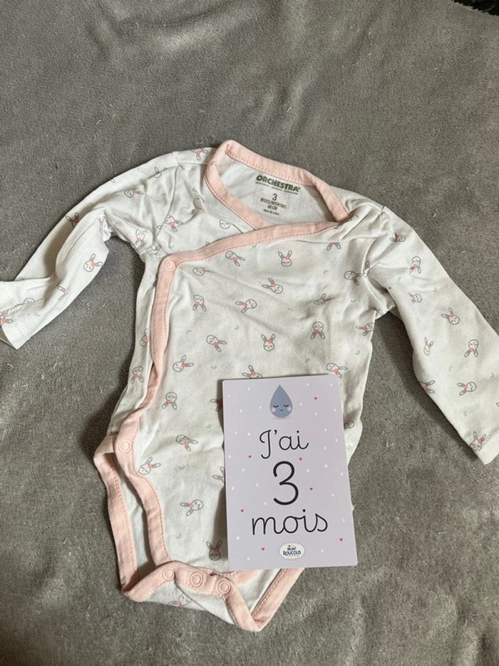 Body manches longues lapin Orchestra taille 3M (60cm) peu porté en très bon état, d’autres produits et vêtements bébé disponible dans mon dressing