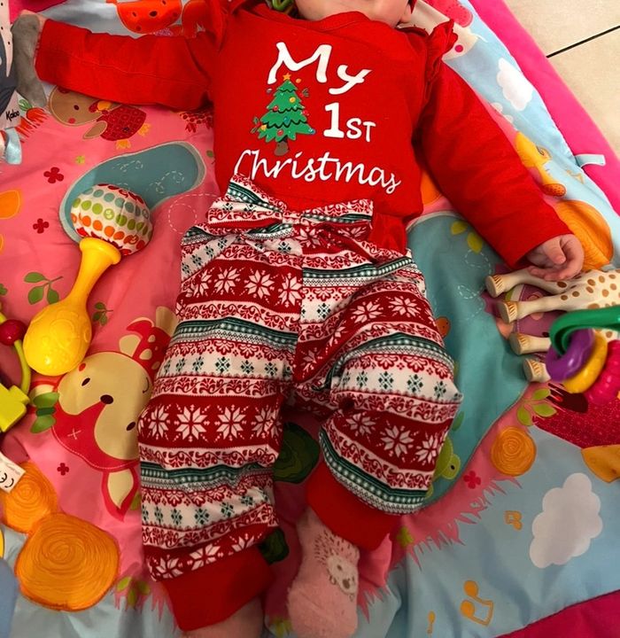 Ensemble mon premier Noël taille 3/6 mois mixte comprenant un body, un pantalon et un bonnet, porté une fois comme neuf, d’autres produits et vêtements bébé disponible dans mon dressing