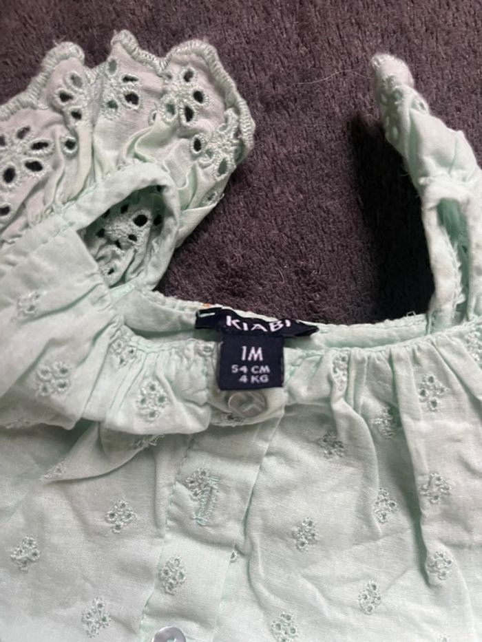 Robe évasée en broderie anglaise kiabi taille 1 mois (54cm/4 kg) neuve juste lavé prix achat 12€, d’autres produits et vêtements bébé disponible dans mon dressing