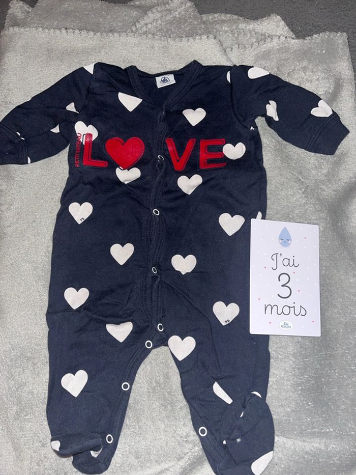 Pyjama fin été love cœur petit bateau mixte taille 3M 60cm très peu porté d’autres produits et vêtements bébé disponible dans mon dressing