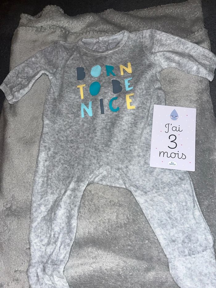 Pyjama velours chaud hiver mixte born to be Nice Tex baby taille 3M porté 1x d’autres produits et vêtements bébé disponible dans mon dressing