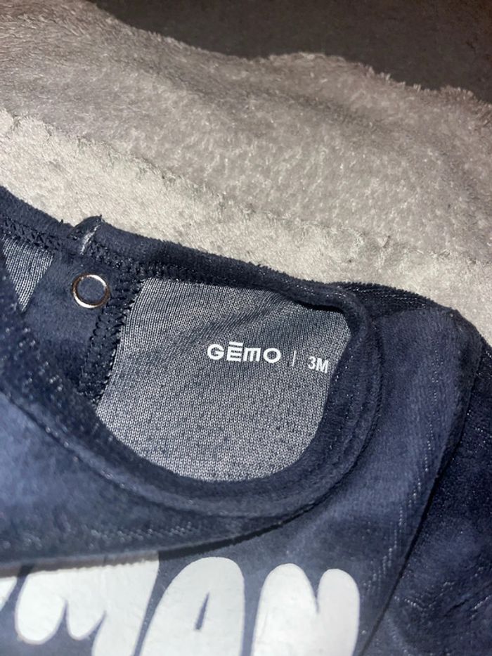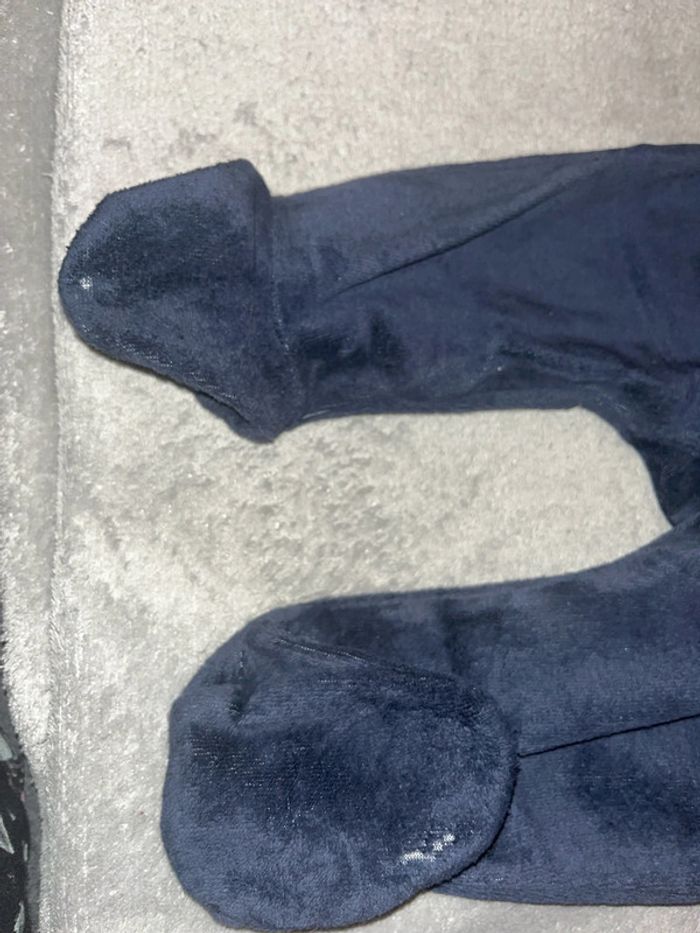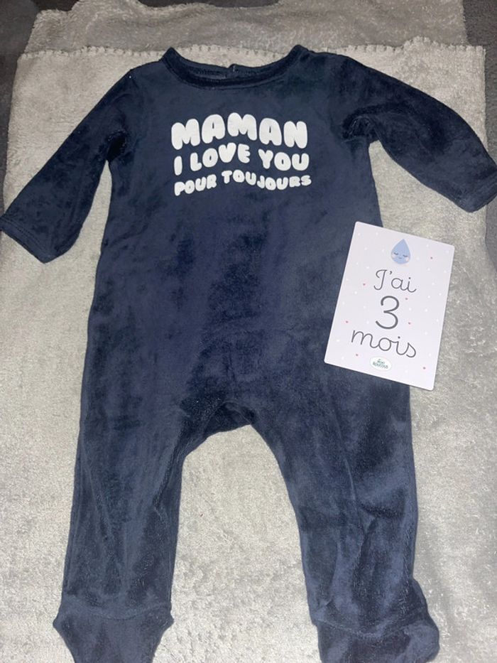 Pyjama velours chaud hiver maman I love you pour toujours Gémo mixte taille 3M porté plusieurs fois avec défaut au niveau des pieds il manque de la matière voir dernière photo d’où le prix d’autres produits et vêtements bébé disponible dans mon dressing