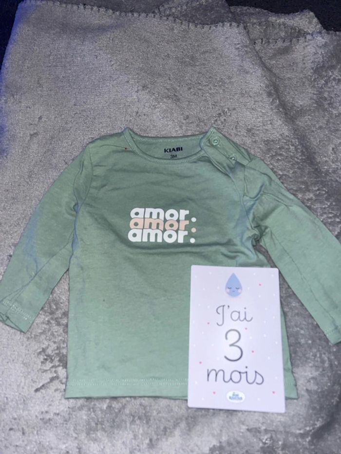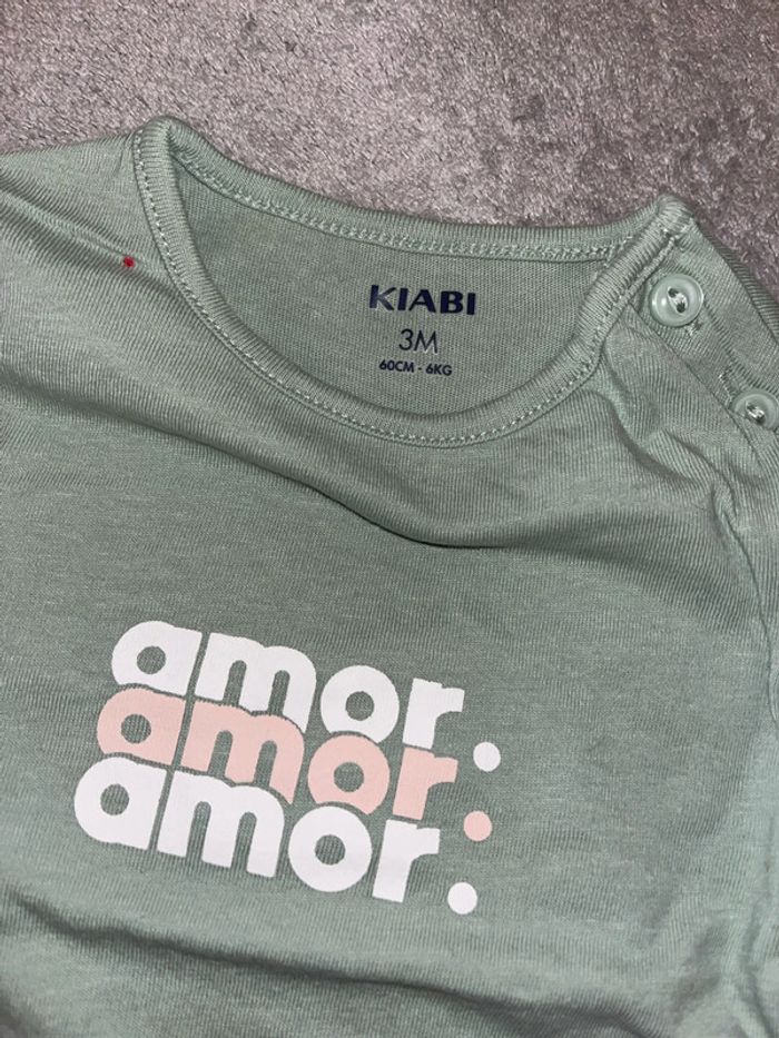 Tee shirt manche longue amor kiabi mixte taille 3M 60cm 6kg neuf sans étiquette juste lavé d’autres produits et vêtements bébé disponible dans mon dressing