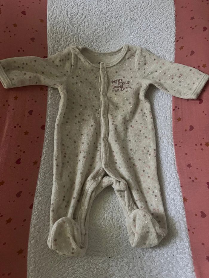 Pyjama chaud bébé petite étoiles dans la lune Gémo taille 1 mois porté 1 fois prix achat 12€, d’autres produits et vêtements bébé disponible dans mon dressing