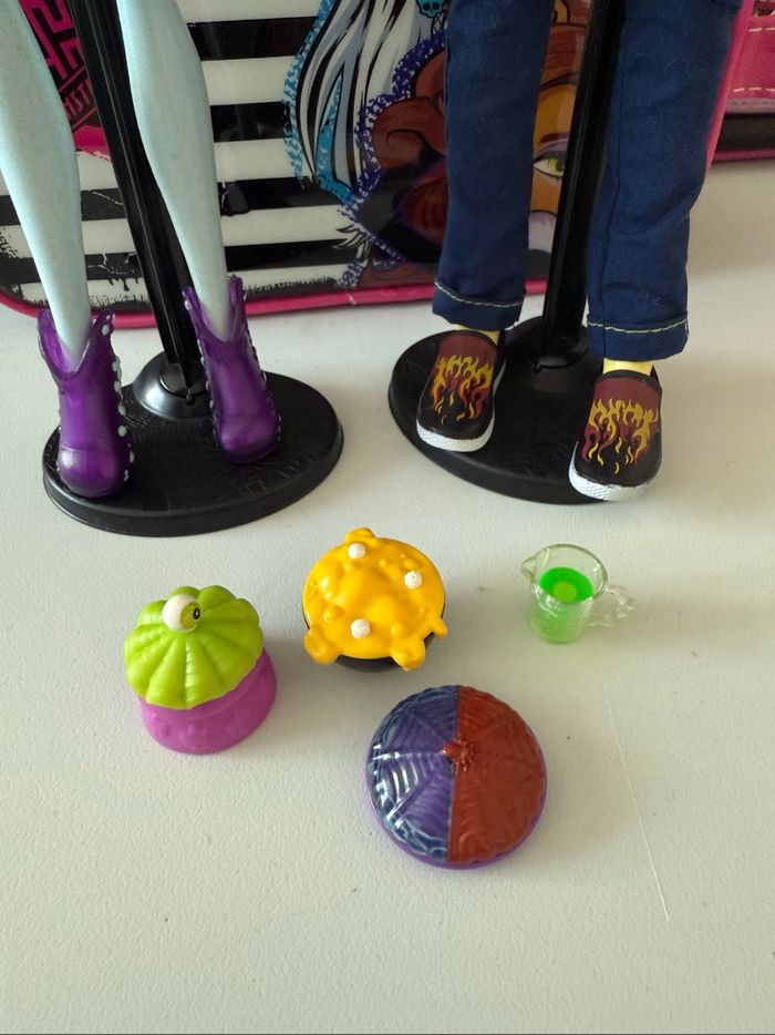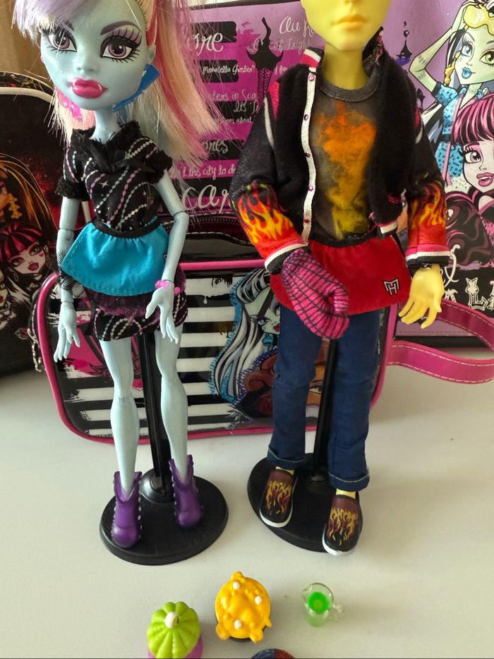 Bonjour à tous , Je vends un lot de poupées Monster High Heath Burns et Abbay Bominable, Home Ick classroom année 2013. Il lui manque un fouet et une petite cuillère, vendu dans l’état avec les accessoires et le pied noir. Si vous avez des questions ou vous voulez plus d’informations (photos ou mesures), je suis disponible.