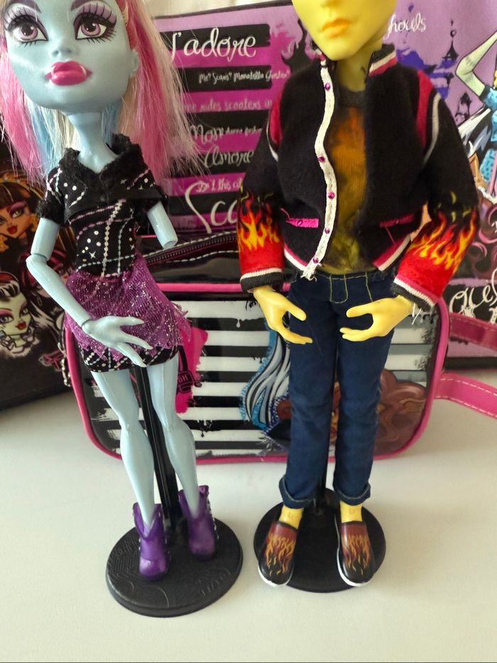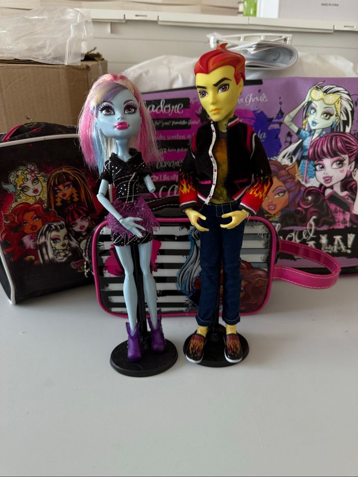 Bonjour à tous, Je vends un lot de poupées Monster High Heath Burns et Abbay Bominable, Home Ick classroom année 2013. Il lui manque le tablier et le gants de cuisine et à elle il lui manque le tablier, les boucles d’oreilles, un avant bras, une main et le bracelet et tout les accessoires, vendu dans l’état sans les pieds noir. Si vous avez des questions ou vous voulez plus d’informations (photos ou mesures), je suis disponible.